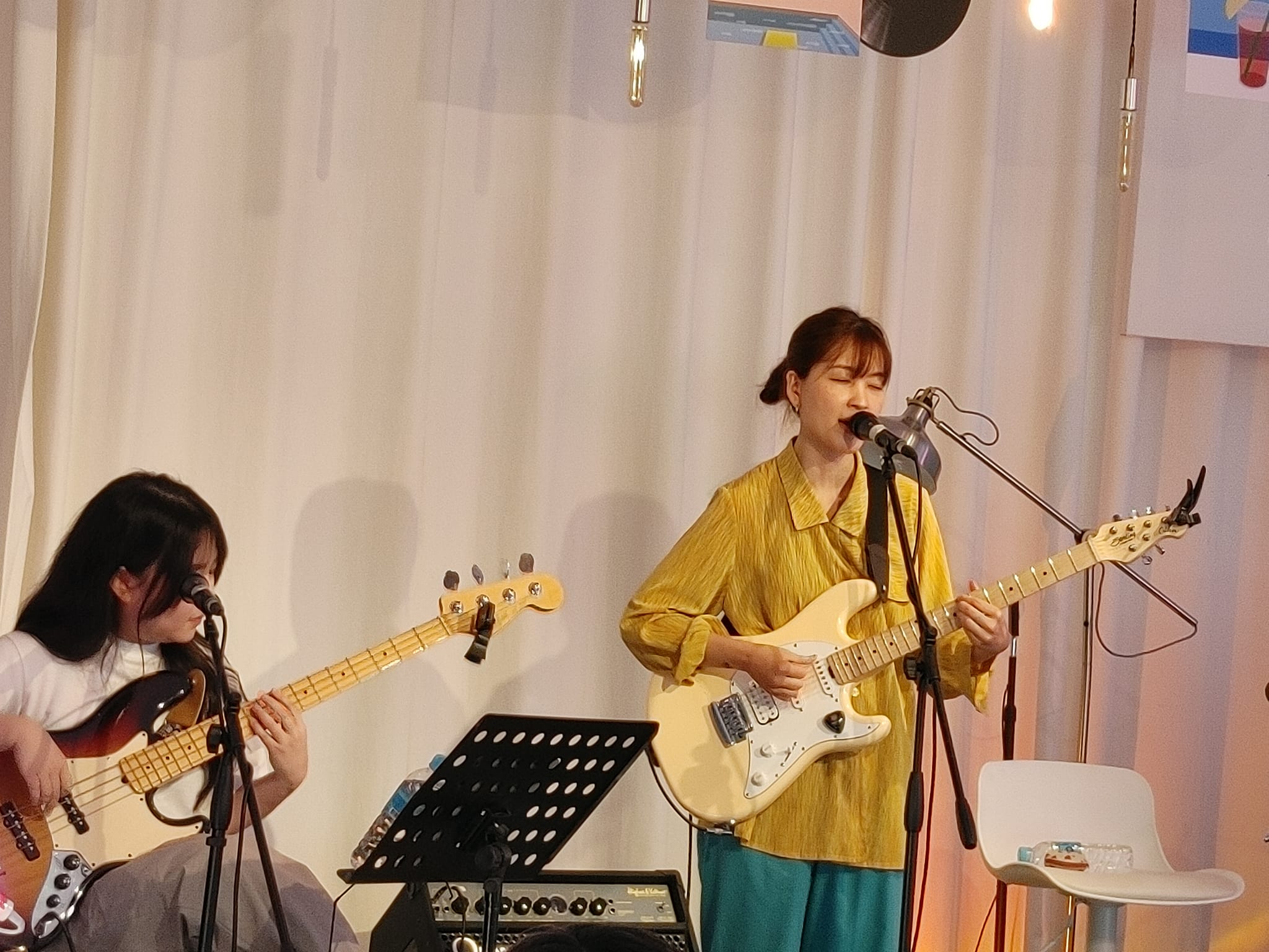 오후 6시에 먼저 몽룡(보컬)과 하림(베이스)이라는 두 명의 여성 뮤지션으로 2010년대 후반 결성된 인디 포크 듀오 몽림의 무대가 먼저 진행되었다. (참고로 이들은 2023년 루비 레코드에서 공모한 ‘레이블 픽(Label Pick!)’에 선정된 팀이며, 향후 1년간 레이블의 지원 속에서 음악을 발표하게 된다고 한다.) 기본적으로 어쿠스틱 지향의 포크 음악이지만 단순히 어쿠스틱 기타 소리와 보컬에만 의지하지 않고 은근한 베이스의 그루브가 때로 잔잔하게, 때로는 긴장감 있게 전개되는 두 사람의 연주는 보컬이 빈 순간들에서도 음악 소리에 더 집중하게 만들어주었다. 몽룡의 보이스는 가늘고 높은 톤이지만 그 특유의 울림이 감미롭고 매력적으로 다가왔다. 공연의 과반수는 신곡 ‘꺾인 꽃은 말이 없다’와 함께 ‘달의 노래’, ‘섬’, ‘요요’ 등 2019년 그들의 첫 EP [섬]의 노래들이었지만, 공연의 취지대로 미발표곡인 ‘사랑꾼’, ‘참 미련하네’, ‘술래’ 등도 공개되었다.